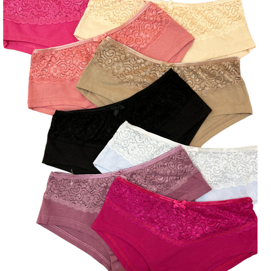Bóxeres cacheteros con pretina encaje unitalla dama Carel paquete de 12