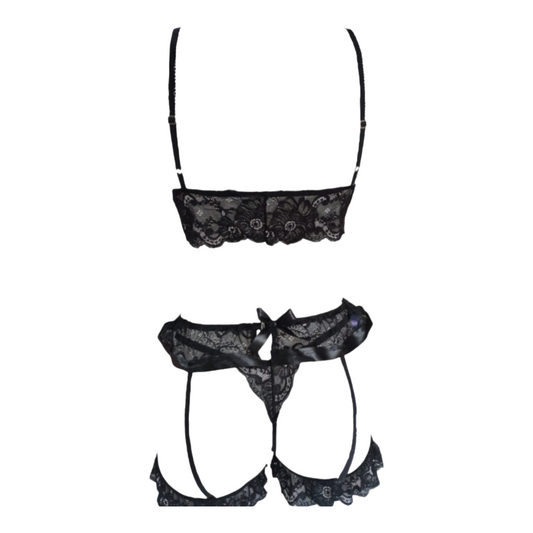Coordinado de media copa con encaje negro dama #23984-73984 Carnival