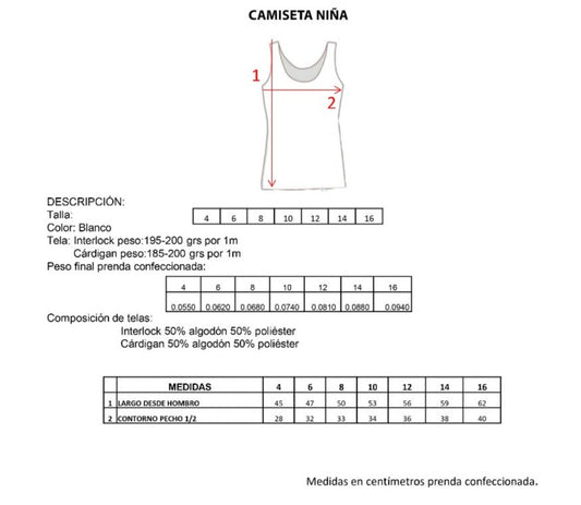 Camiseta inter tirante delgado blanca infantil niña Vianey paquete de 6