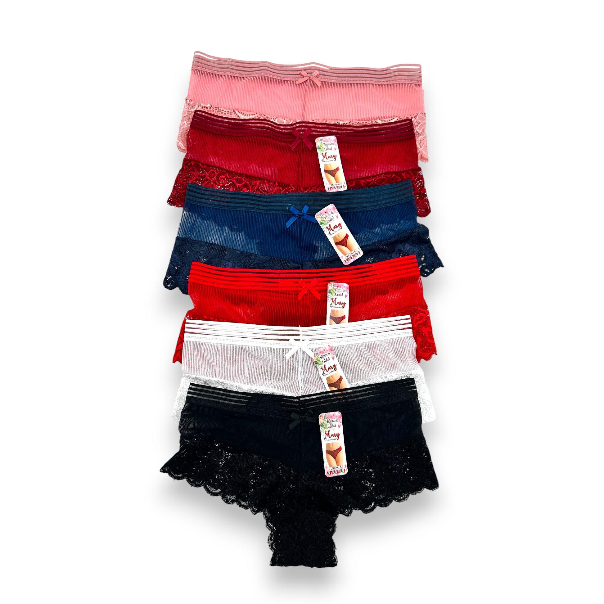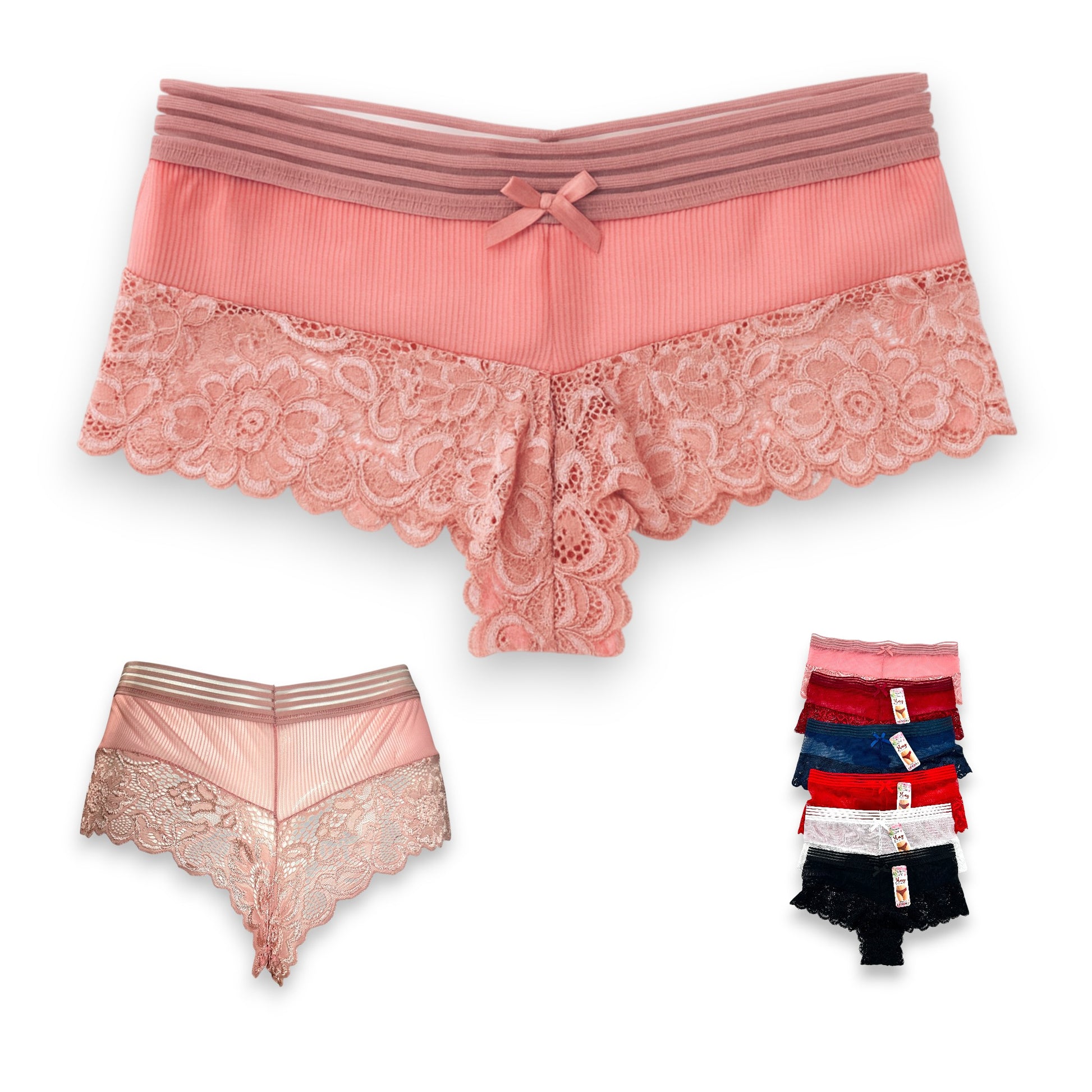 Boxer cachetero con encaje surtido unitalla dama #C38 Mary Paquete de 6